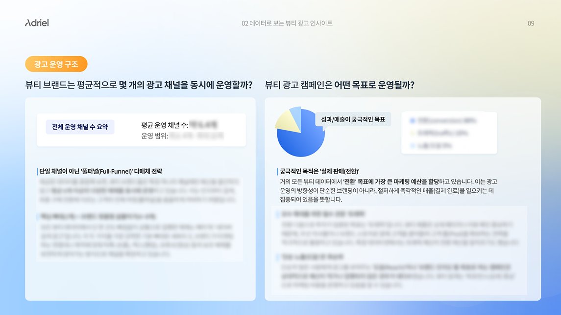 그래서 마케팅 인텔리전스 솔루션 아드리엘이, 한정된 예산에서 최고의 효율을 찾는 뷰티 마케터분들을 위해 국내 뷰티 브랜드 8곳의 1년치 실제 광고 집행 데이터를 직접 분석한 인사이트 리포트를 발행했습니다🔥