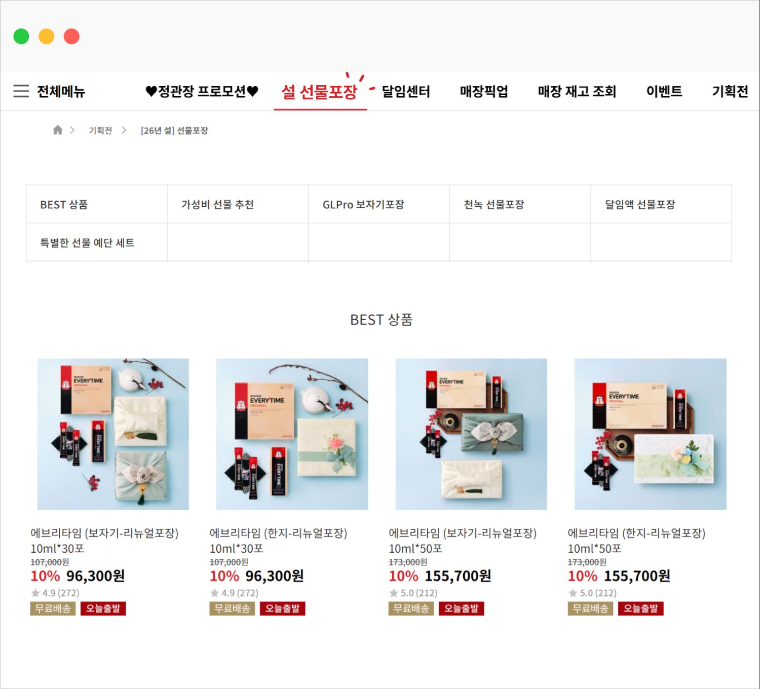 D2C 자사몰에서는 ‘설날 프리미엄관’과 같이 곧바로 고급스러운 포장과 함께 명절 상품을 고를 수 있도록 선택지를 좁혀주는 큐레이션이 필요합니다.