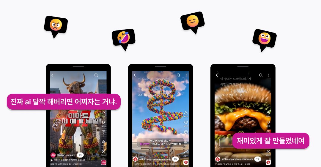 광고를 바라보는 시선은 극명하게 갈렸어요. 일부 소비자들은 혜택에 집중하겠다는 솔직하고 유쾌한 메시지를 환영했죠. 다른 한편에서는 시각적으로 다듬어지지 않은 AI가 그대로 드러나는 영상에 피로도와 불쾌함을 표현했어요. 이처럼 신세계의 랜쇼페 광고는 AI 마케팅에 근본적인 질문을 던졌어요.