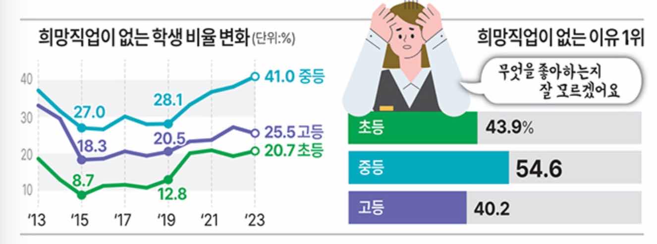 요즘 13~19세 청소년들은 미래 직업 선택 조건 중 ‘수입’을 가장 우선시한다고 합니다. 이는 10년 전 ‘흥미/적성’이 1위를 했던 것과 반대되는 결과예요.
