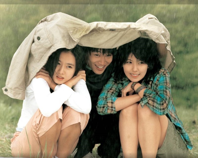 저는 아주 오래된 영화이긴 하지만 비와 로맨스를 떠올리면 가장 먼저 떠오르는 영화가 하나 있는데요, 2002년에 개봉했었던 <연애소설>입니다. 이은주, 손예진, 문근영, 차태현 등 유명한 배우들이 대거 출연했었던 이 영화는 풋풋한 삼각관계를 주제로 하고 있는데요, 거기에 2000년대 초반에 흥행했던 '청춘', '시한부', '사진&편지'과 같은 소재들도 잘 버무려져 있습니다. 이 영화의 삼각관계에 해당하는 '수인', '경희', '지환'이 (아마도) 대관령 언덕에서 외투를 둘러쓰고 비를 피하는 씬이 저에게는 '비'하면 가장 먼저 떠오르는 장면입니다. 꽤 어릴 때 이 영화를 처음 보고 예상치 못했던 반전에 깜짝 놀라기도 했었는데요, 지금 와서 생각해보니 이 영화가 마냥 단순한 삼각관계가 아니라는 생각이 들기도 합니다.