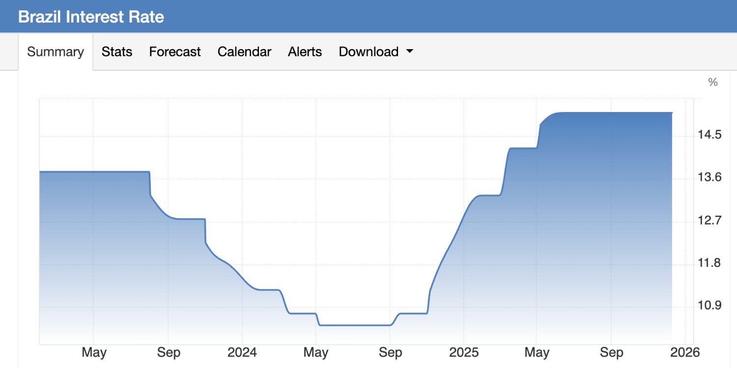 ๋ฐ๋ฉด, ๋ธ๋ผ์ง ๊ฐ์ ์ ํฅ๊ตญ์ ๊ธ๋ฆฌ ์์ง์์ ๋ณดํญ์ด ํจ์ฌ ๋๊ณ (50bp์ฉ ์์ง์ด๋ ๊ฒ ํํ๊ณ 75bp, ๋๋ก๋ 100bp๊ฐ ๋์ ๋๋ ์์ด์.) ๋ฐฉํฅ๋ ์๋ค๋ฆฌ๊ฐ๋ค๋ฆฌํ๋ ๊ฒฝ์ฐ๊ฐ ๋ง์์. ์๋ง ์ ์ง๊ตญ์ ๊ธ์ต ์์ฅ์ด ์๋๊ธฐ ๋๋ฌธ์ด๊ฒ ์ฃ .