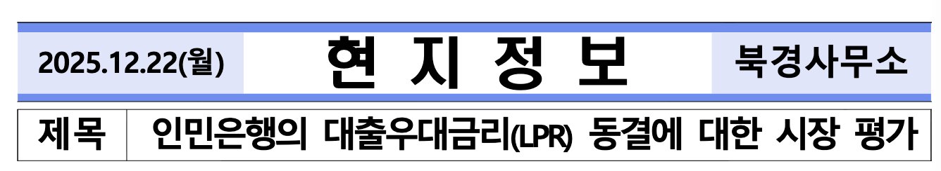 ๊ทธ๋ฐ๋ฐ ์ ๊น๋ง์. ๋ณด๊ณ ์์๋ ๋ถ๋ช "์ธ๋ฏผ์ํ์ 2025.12.22.(์) ๋์ถ์ฐ๋๊ธ๋ฆฌ(LPR)๋ฅผ ๋๊ฒฐ"์ด๋ผ๊ณ ๋์์๋๋ฐ ์ข ๋ง์ด ์ ๋ง์ง ์๋์? LPR์ ์ํ๋ค์ด ์์จ์ ์ผ๋ก ์ ํ๋ ๊ฑด๋ฐ ์ด๊ฑธ ์ ์ธ๋ฏผ์ํ์ด ๋๊ฒฐํ๋ ๊ฑด๊ฐ์?