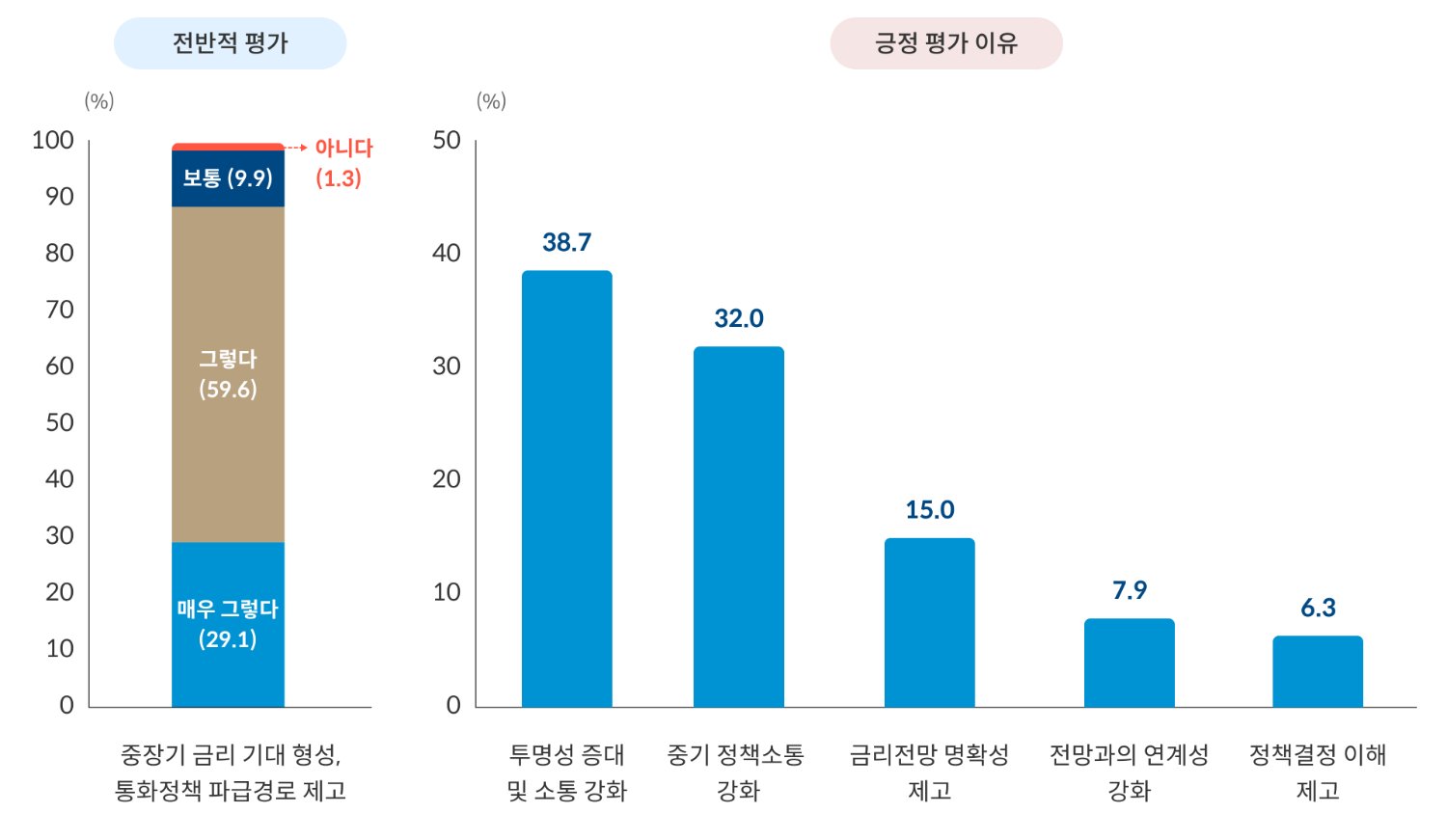사람들의 반응도 좋아요. 미래에 대한 가이드를 제시함에 따라 한국은행이 초단기 금리만 (직접적으로) 움직이더라도 중장기 금리 기대 형성에 도움이 될 수 있다는 것이죠.
