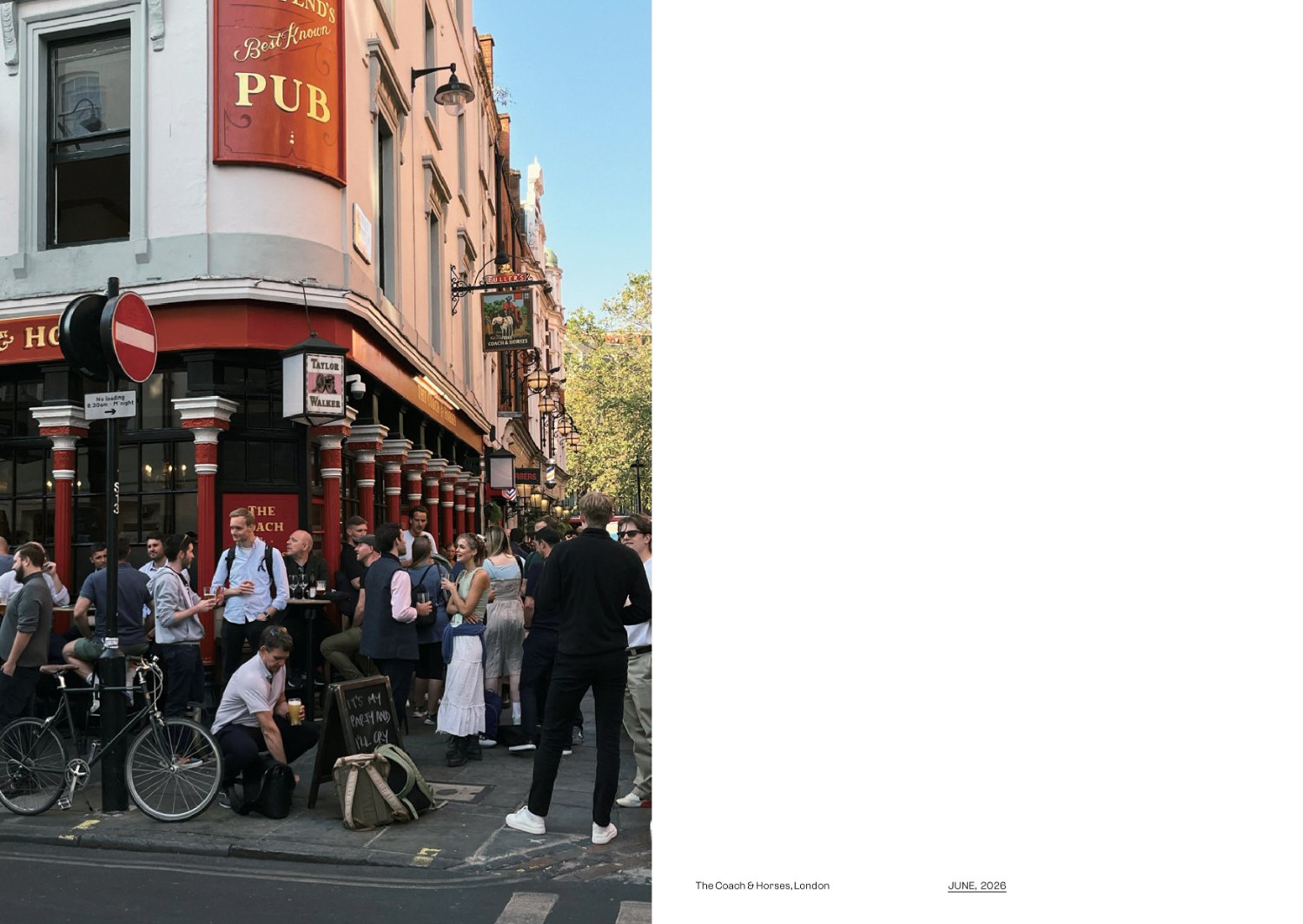 Q ์ฌ์ง์์ ๋น๊ณผ ์ฌ๋๋ค์ ๋ชจ์ต์ด ๋น ์ง์ง ์๋ ๊ฒ ์ธ์์ ์ด์์ด. ๊ณต๊ฐ์ ์์ฑํ๋ ๊ฑด ๊ฒฐ๊ตญ ๊ทธ ๊ณต๊ฐ์ ์ฑ์ฐ๋ ์ฌ๋์ด์์. ๊ทธ๋ ์ ๋ง ์ธ๋ก์ ๋ ๋ด. ํผ์ ๋ณด๋ด๋ ์๊ฐ์ด ๋ง๋ค ๋ณด๋, ์น๊ธฐ์ข ๊ธฐ ๋ชจ์ฌ์ ์ด์ผ๊ธฐํ๋ ์ฌ๋๋ค์ ๋ณด๋ฉด ์ฐธ ๋ถ๋ฝ๊ณ , ์์๋ค๊ณ ์๊ฐํ๊ฑฐ๋ . ์์ด๋ฌ๋ํ๊ฒ๋ ๊ทธ๋ฌ๋ฉด์ ํผ์์๋ ์ฆ๊ฑฐ์ธ ์ ์๋ ๋ฐฉ๋ฒ์ ๋ฐฐ์ด ๊ณณ์ด ์๊ตญ์ด๊ธฐ๋ ํด. ํํธ, ๊ฐ์ธ์ ์ผ๋ก โ๏ธํ๋ฆฐ ๋ ์ ์ข์ํ๋๋ฐ, ์๊ตญ์ ์๋ค ๋ณด๋ ๋น์ ๋ํ ๊ฒฐํ์ด ์์๋ ๊ฑฐ ๊ฐ์. ๋ด ์ฌ์ง๋ค์ ๊ทธ ๋น์ ๋์ ๊ฒฐํ์ ์ฑ์์ฃผ๊ณ ์์ด. ๊ทธ๋์ ๋น์ด ๋๋ ์ฅ๋ฉด์ด๋ ๋ฐ๋ปํ ํ์ด์ด ๋ณด์ด๋ ์ฌ์ง์ด ๋ง์. ๋น์ ๋ณด๋ฉด ๋ญ๋๊น, ํ๋๋ฐ๋ ๊ธฐ๋ถ์ด ๋ ๋ค๊ณ ํด์ผ ํ๋. ๊ทธ๋์ ๊ทธ๋ ๊ฒ ์ฑ๊ด์ด ์ข์ ํ ๋ผ์ค๋ฅผ ์ฐพ์๋ค๋๊ณ , ๋น์ด ๋๋ ๊ณต๊ฐ์ ๋ด์๋๋ ๊ฑด ์๋๊น ์ถ์ด.