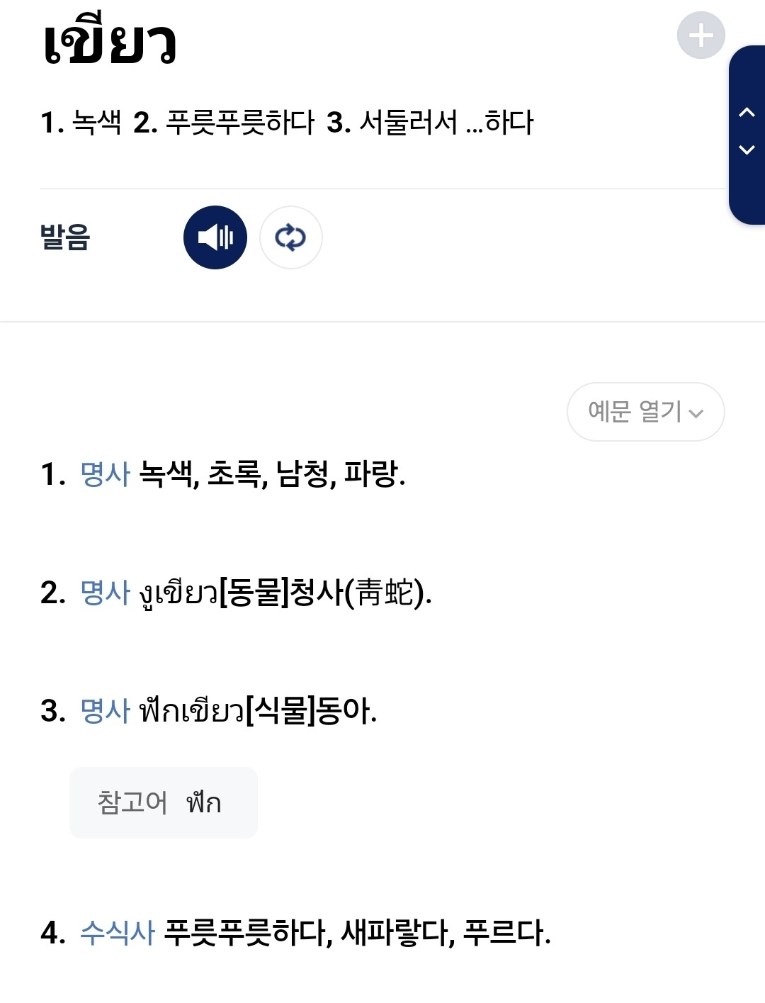 그런데 2년 후, 태국어 수업을 청강으로 듣던 중 신기한 것을 발견합니다. 태국어로 초록불은 '화이키야우(ไฟเขียว)'인데, '화이(ไฟ)'는 불빛, '키야우(เขียว)'는 푸르다는 의미를 가집니다. 태국에서도 한국이나 일본과 같은 현상이 나타나는 것입니다. 덧붙여 교수님께서는 이처럼 초록과 파랑을 일컫는 용어가 혼재되는 현상을 Blue 와 Green을 합쳐 'Grue language'라는 용어가 있다고 알려 주셨지요. 무릎을 '탁' 쳤습니다. 이거였구나 하고 말이죠💡