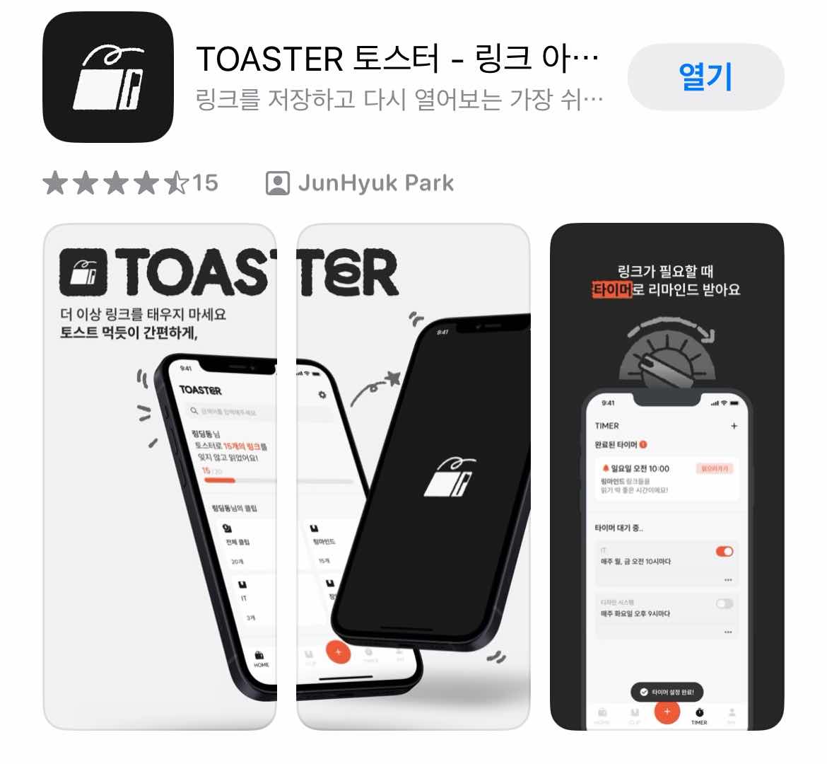 그 때 이 토스터 앱을 사용해보세요! 북마크처럼 링크들을 모아둘 수 있고, 열람 여부도 따로 남겨둘 수 있어서 편리해요. 평소 보고 싶은 것들 쌓아두는 분들께 추천 👍