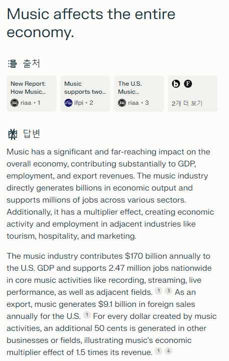 더불어 여러 생성형 AI 서비스들을 알려드리고자 하는데요, 첫번째는 ✅perplexity ai✅ 입니다. 무언가 주장하는 글을 쓸 때, 적당히 자신의 의견을 뒷받침하기 위해 근거를 찾아다니며 쉴새없이 구글링하셨던 분들! 이 ai 서비스는 자신의 주장문을 입력하기만 하면 이를 지지하는 근거들을 덧붙여 전체적인 논설문을 만들어준답니다. 심지어 소주제를 나눠주기도 하고, 세부적인 수치나 인터뷰 내용에 대해서는 해당하는 출처 역시 명확히 표기해준다는 점에서 많은 대학생분들 혹은 직장인분들께 도움이 될 것 같아요.