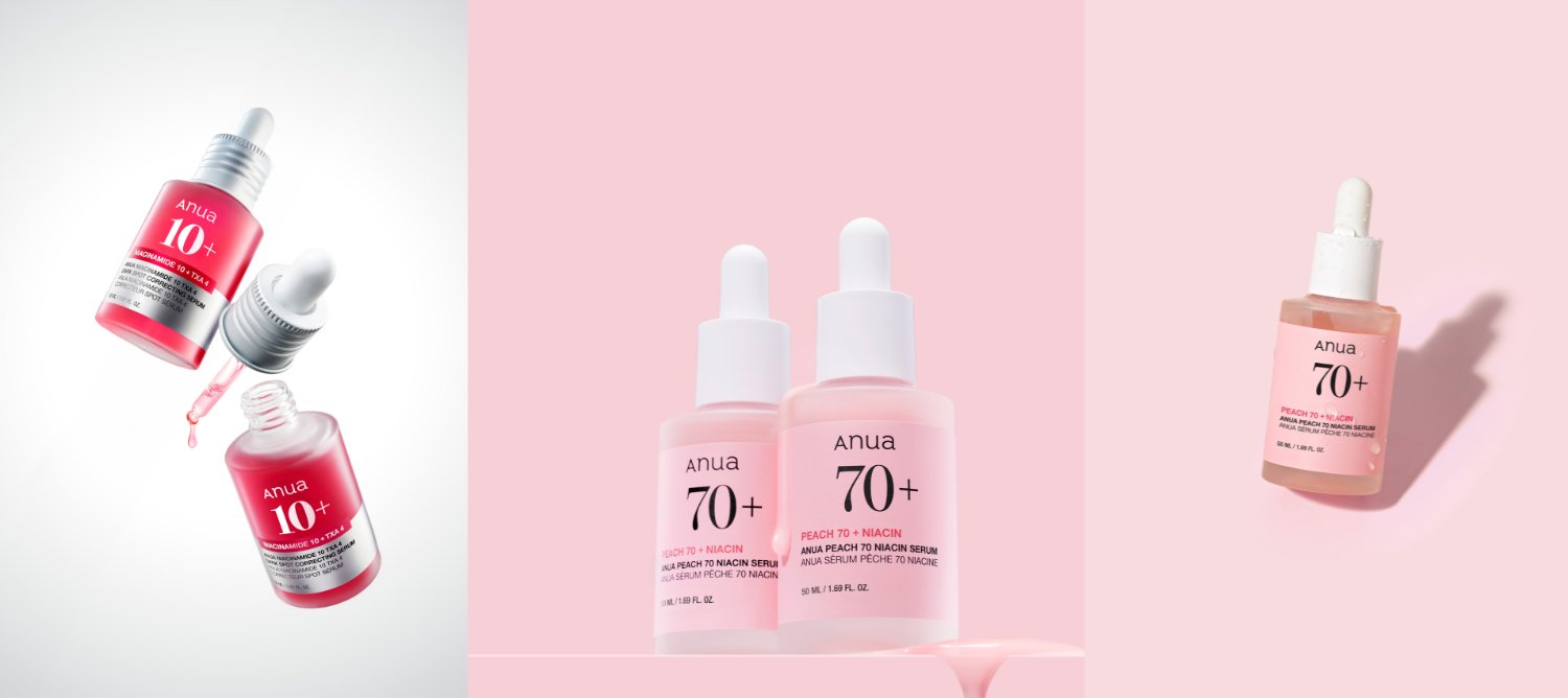 아누아는 이를 실제 제품과 성과로 증명해왔습니다. 바로 글로벌 히어로 제품으로 자리 잡은 아누아의 핑크라인 ‘복숭아 세럼’과 ‘TXA 세럼’입니다.