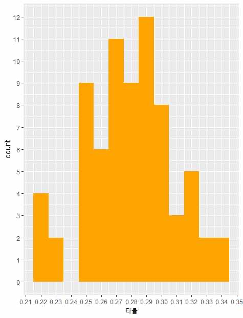 📍선수들의 타율 분포를 히스토그램으로 알아봅시다 !