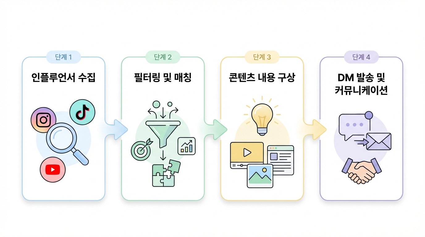 수집된 인플루언서는 단순히 목록에 머물지 않습니다.