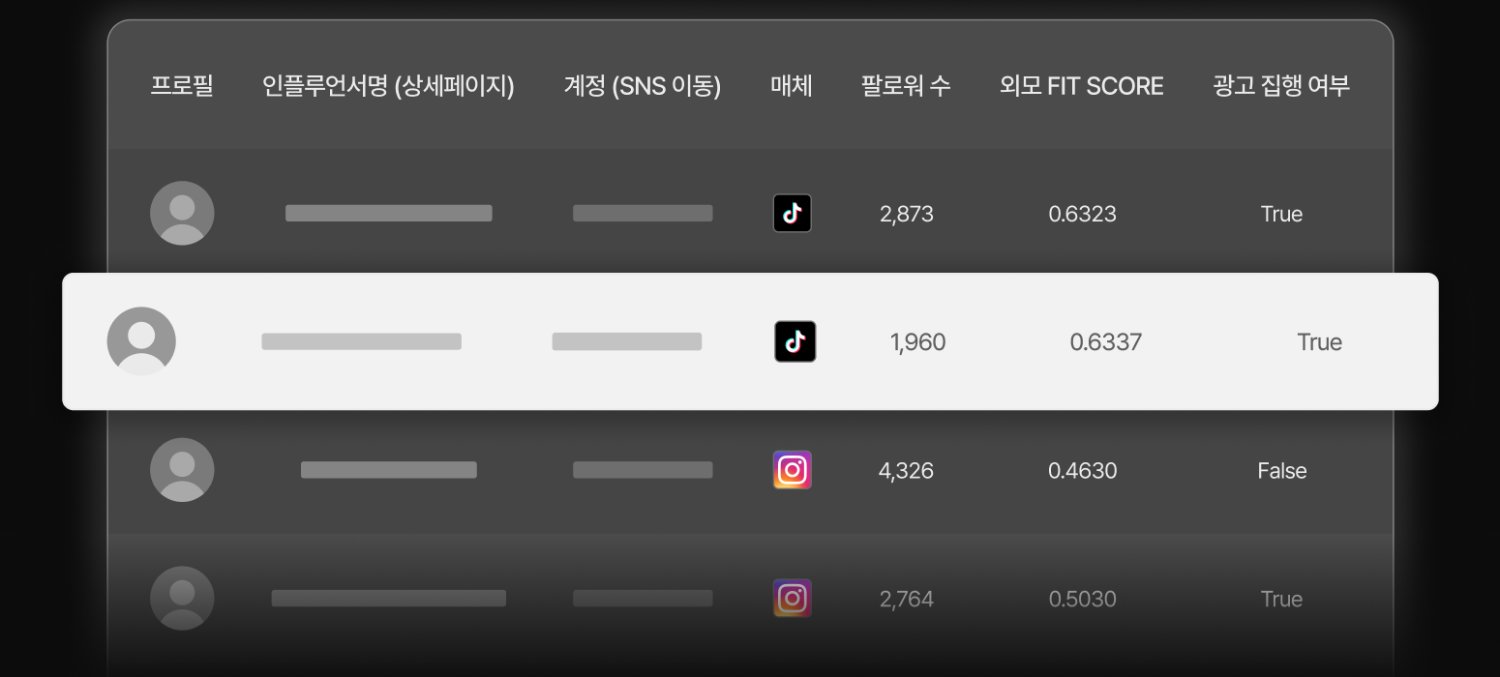 AI는 인플루언서의 메타 데이터(팔로워 특성, 콘텐츠 유형, 반응률, 과거 성과지표 등)를 기반으로 브랜드 제품과 최적의 매칭 후보를 점수화할 수 있습니다.