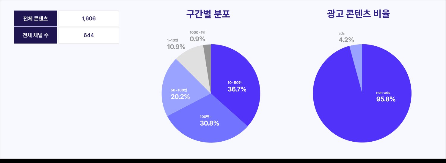 또한 전체 인급동 콘텐츠 중 유료 광고 콘텐츠 비중은 단 4.2%에 불과했으며, 95.8%는 오가닉 콘텐츠였습니다. 이는 광고보다는 구독자의 자발적 선택을 받은 오가닉 콘텐츠가 인급동에 오를 가능성이 훨씬 높았음을 시사합니다.