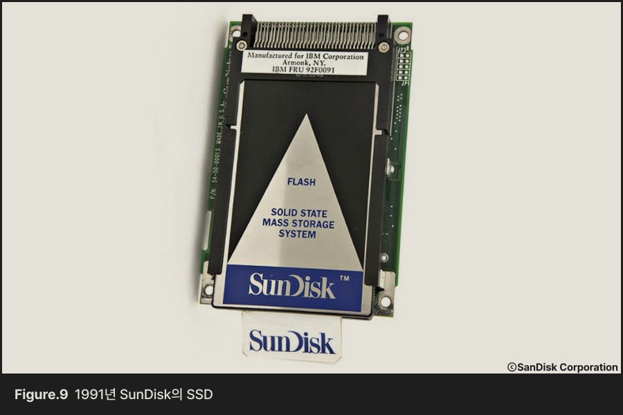 1980년, 도시바의 마스오카 후지오Fujio Masuoka 는 FGMOS를 기반으로 플래시 메모리를 개발하면서 SSD 기술의 기초를 확립했습니다. 플래시 메모리는 전원이 꺼져도 데이터를 유지할 수 있었고, 데이터를 빠르게 지우고 다시 쓸 수 있는 간단한 구조로 주목을 받았죠. ‘플래시’라는 이름은 데이터를 지우는 과정이 카메라 플래시처럼 순간적으로 이루어진다는 데서 유래했습니다.
