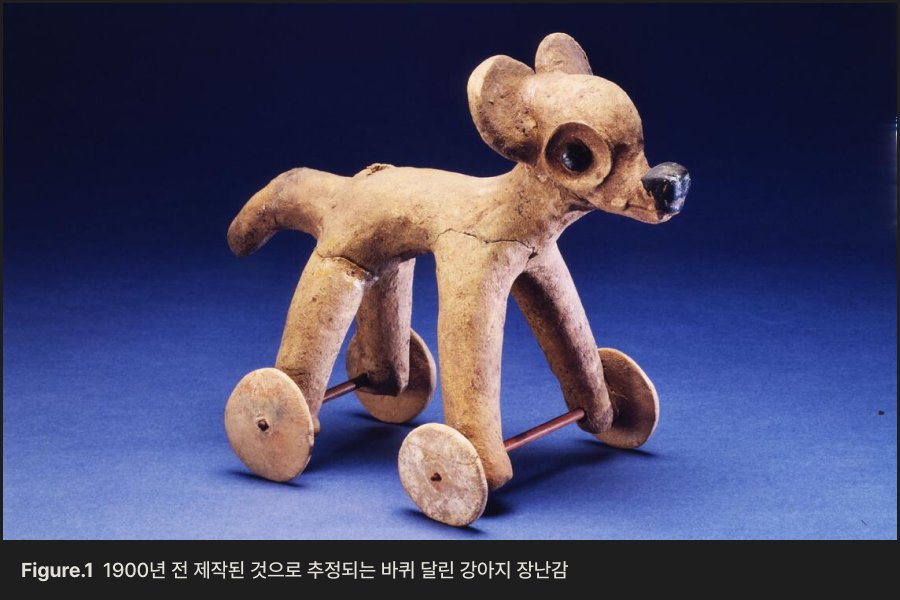 남부 멕시코에서 1900년 전에 만들어진 것으로 추정되는 바퀴 달린 강아지 모양의 장난감이 발견되었습니다. 흥미로운 점은, 이 지역의 원주민이었던 올메크인은 수레나 우마차 같은 바퀴 달린 이동수단을 만든 적이 없었다고 알려져 있다는 사실이었죠. 이 모순을 설명하기 위해 여러 가지 주장이 제기되어 왔습니다. 그중에서도 가장 유명한 것은 제레드 다이아몬드가 <총, 균, 쇠>에서 제시한 주장이었죠. 그는 바퀴 달린 이동수단을 끌기 위해서는 가축이 필요한데 서반구에는 가축으로 삼기에 마땅한 가축이 없었다고 설명했습니다.