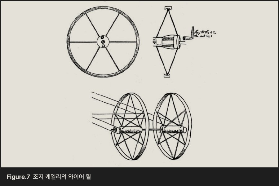 바퀴살은 나무에서 와이어로 진화합니다. 와이어 휠의 개념은 1808년 조지 케일리George Cayley 에 의해 처음 등장했지만, 그는 특허를 신청하지 않았습니다. 결국 와이어 휠에 대한 최초의 특허는 1826년 영국의 시어도어 존스Theodore Jones 가 획득했으며, 자전거 와이어 휠에 대한 최초의 특허는 1869년 프랑스의 외젠 메이어Eugène Meyer에게 돌아갔죠.