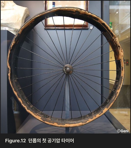 최초의 실용적인 공기 타이어는 1888년 존 보이드 던롭John Boyd Dunlop이 개발했습니다. 던롭은 자전거 타는 아들을 위해 공기 타이어를 발명했다고 알려져 였죠. 던롭의 타이어의 초기 구매자 중에는 자전거 선수 윌리 흄William Hume 이 있었는데요. 흄은 던롭의 타이어가 달린 자전거를 타고 1889년 퀸스 칼리지 스포츠 경기에서 4개의 사이클 종목에서 모두 우승하며 공기 타이어의 우수성을 입증합니다.
