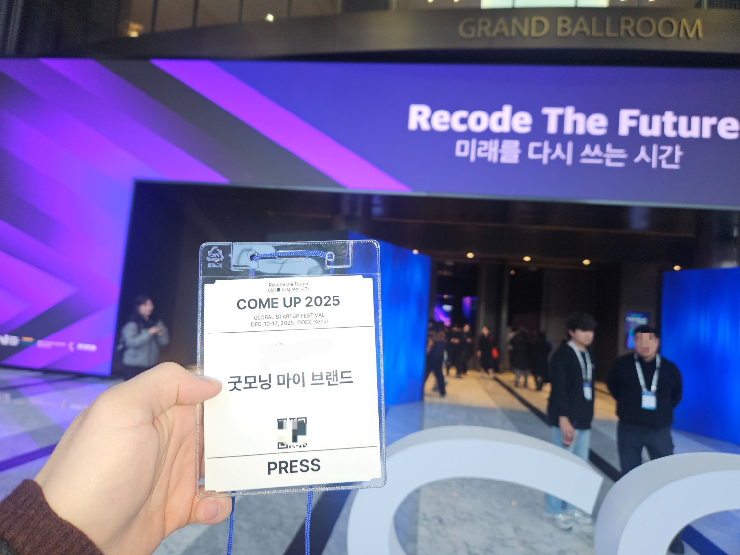 안녕하세요 “굿모닝 마이 브랜드” 에디터 햇살입니다☀️. 저는 지난 12월 10일부터 12일까지 강남 코엑스에서 열린 COME UP 2025 행사에 다녀왔습니다. 이 행사는 국내 최대 규모의 글로벌 스타트업 페스티벌로, 국내외 다양한 스타트업들이 한자리에 모여 혁신 기술과 아이디어를 소개하는 행사입니다. 규모가 큰 행사인 만큼 전국 각지에서 모인 스타트업들의 열정과 활기를 직접 느낄 수 있었습니다.