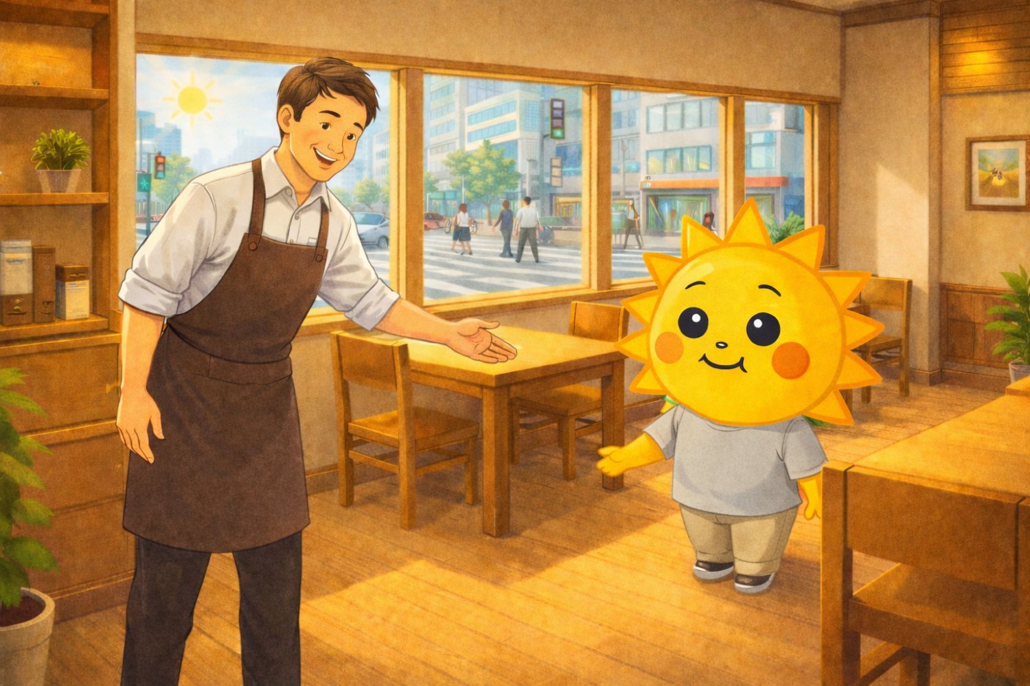 ๊ฒ๋ค๊ฐ ์ฐฝ๊ฐ๋ ๋ถ์๊ธฐ๋ฅผ ๋ณด์ฌ์ฃผ๋ ๋ฌด๋์ผ. ์ฐฝ๊ฐ์ ์์ ์๋ ์๋๋ค์ ์ท์ฐจ๋ฆผ, ํ์ , ๋ํ ๋ถ์๊ธฐ ์์ฒด๊ฐ โ์ด ๊ฐ๊ฒ๋ ์ด๋ค ์ฌ๋๋ค์ด ์ค๋ ๊ณณ์ธ์งโ๋ฅผ ๋งํด์ค. ๋ฐ์ดํธ ์ค์ธ ์ปคํ์ด ๋ณด์ด๋ฉด ๋ฐ์ดํธ ๋ง์ง์ฒ๋ผ ๋ณด์ด๊ณ , ํผ์ ๋ ธํธ๋ถ ํด๊ณ ์์ ์์ผ๋ฉด โํผ๋ฐฅ๋ ํธํ ๊ณณ์ด๊ตฌ๋โ๋ผ๋ ์ธ์์ด ์๊ธฐ์ง. ๊ทธ๋ฌ๋๊น ์ฐฝ๊ฐ๋ ๊ด๊ณ ๋น ํ ํผ ์ ๋ค์ด๊ณ ๊ฐ๊ฒ ์ฝ์ ํธ๋ฅผ ๊ณ์ ๋ณด์ฌ์ฃผ๋ ์ผ์๋์ธ ์ ์ด์ผ.
