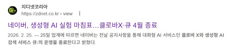 ์ต๊ทผ ๋ค์ด๋ฒ๊ฐ 2026๋ 4์์ ํด๋ก๋ฐX์ ํ(Cue:) ๊ฐ์ ์์ฑํ AI ์๋น์ค๋ฅผ ์ข ๋ฃํ๊ฒ ๋ค๊ณ ๋ฐํํ์ด. ์ด๊ฑด ์ฝ๊ฒ ๋งํ๋ฉด ํ๊ตญํ ์ฑGPT ๊ฐ์ ์๋น์ค์ผ. ๋ค์ด๋ฒ์ ๊ฑฐ๋์ธ์ด๋ชจ๋ธ ํ์ดํผํด๋ก๋ฐX๋ฅผ ๊ธฐ๋ฐ์ผ๋ก ๋ง๋ค์ด์ก์ง.