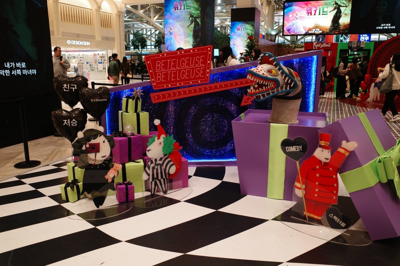 이러한 대중화 흐름의 정점에서, CJ ENM은 연말 대작인 '킹키부츠', '비틀쥬스', '물랑루즈' 세 작품을 엮어 고속터미널 신세계백화점 1층에서 통합 팝업스토어를 열었습니다. 국내 최고의 유동인구 접점에 거액을 들여 팝업을 설치한 이 파격적인 행보는 마케터들의 궁금증을 자아냅니다. CJ ENM은 왜 이처럼 공격적인 마케팅을 감행했을까요? 그리고 이곳에서 얻고자 했던 실질적인 목적은 무엇이었을까요?