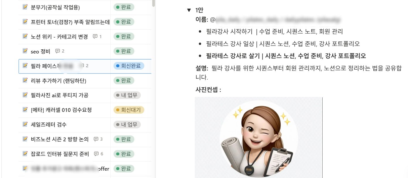 업무요청, 공지사항, 프로젝트 관리만 구분해도 구조는 많이 나아집니다. 하지만 막상 일하다 보면 “그래도 뭔가 부족한데…”라는 느낌이 들 수 있습니다. 그래서 공여사들이 실제로 어떻게 소통 구조를 보완하고 있는지, 노션 시스템 안에서 쓰는 몇 가지 도구를 이어서 소개합니다.