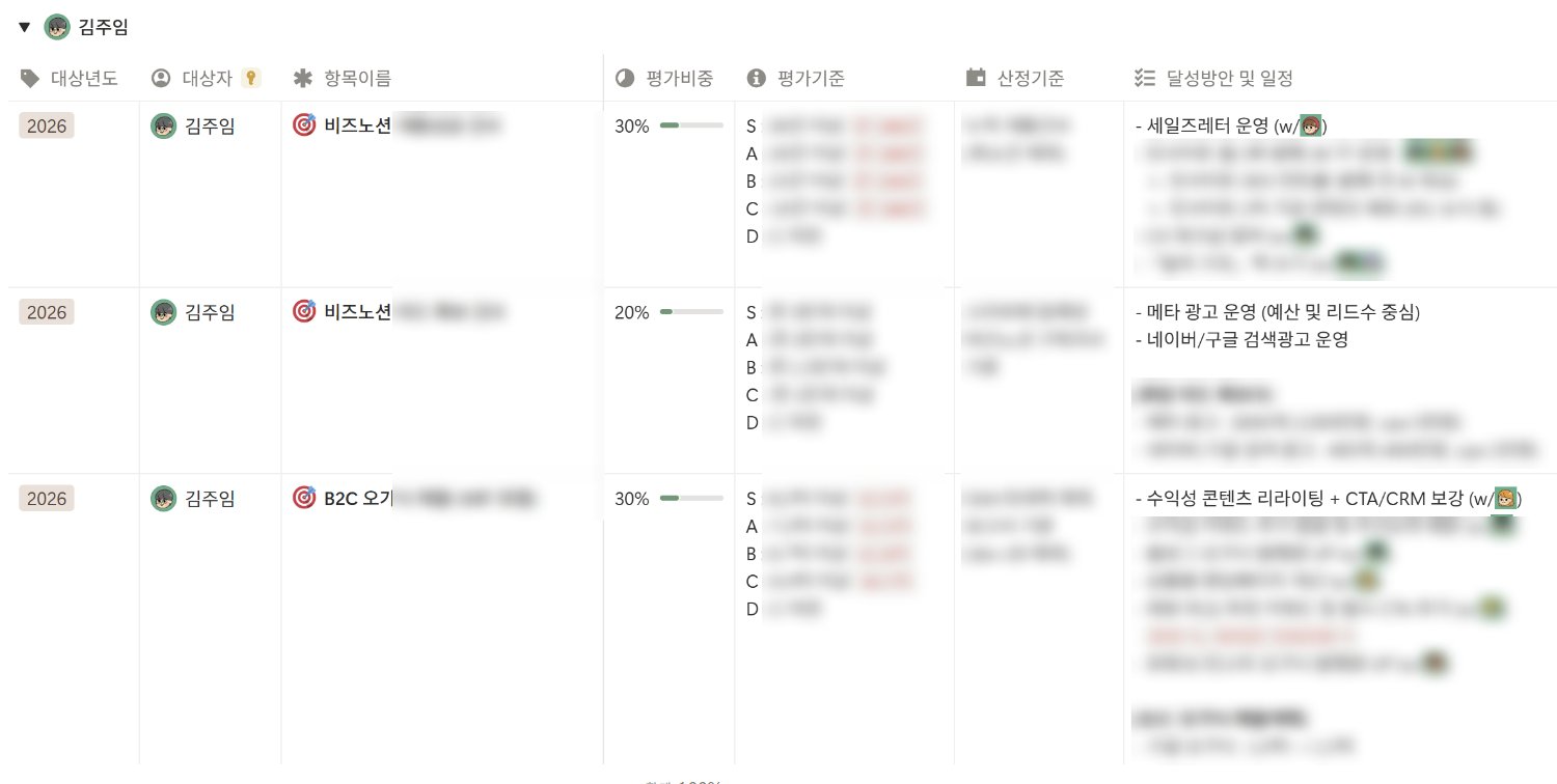 이 시스템 자체가 구성원에게 이런 메시지를 건넵니다. “우리 회사는 이렇게 일합니다.” 새로 합류한 사람도 시스템을 한 바퀴만 둘러보면, 회사의 기준과 방식이 어떻게 짜여 있는지 바로 이해할 수 있습니다.