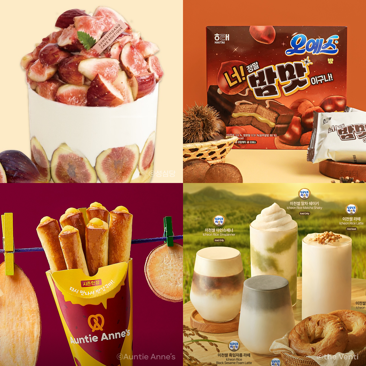 투썸플레이스도 고구마 디저트를 발표하면서 가을 디저트 유행에 합류했어요. 포슬포슬 카스테라 사이에 고구마 크림을 넣은 고구마 생크림 케이크와 꿀고구마 라떼, 전통적인 가을 디저트 홍시를 넣은 주스를 차례차례 공개한 것. 앤티앤스 역시 베이컨 고구마 치즈 스틱을 시즌 한정으로 출시했고, 더벤티도 이에 질세라 이천 쌀을 활용한 라떼, 아인슈페너, 베이글 등을 공개하며 가을 제철음식 트렌드에 놓치지 않고 탑승했어요.