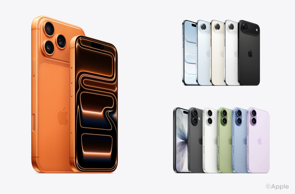 이번에 애플이 공개한 아이폰 17 시리즈는 아이폰 17 기본형과 에어, 프로로 구성되어 있어요. 특히 이중 사람들의 주목을 받은 건 ‘아이폰 에어’ 모델인데요. 아이폰 에어는 역대 아이폰 중 가장 얇은 모델로, 두께가 5.6mm 밖에 되지 않는 초슬림형 모델이라고. 지난 아이폰 16 시리즈 플러스 모델의 두께가 7.8mm였던 것과 비교하면 2mm 이상 얇아졌어요. 이 밖에도 아이폰17 기본 모델은 디스플레이가 기존 6.1인치에서 프로와 같은 6.3인치로 커졌고, 전면 카메라의 화소는 기존의 두 배인 2400만 화소로 늘어났다고 해요. 아이폰17 프로는 카메라가 있던 후면 왼쪽 윗부분이 직사각형으로 커지는 등의 변화가 있었고요.