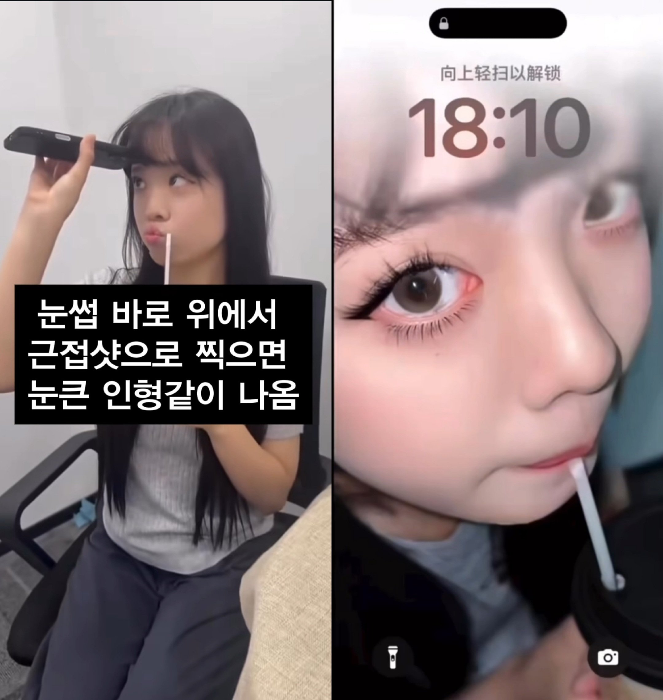최근 휴대폰 후면 카메라를 눈과 눈썹에 가깝게 붙이고 플래시를 터뜨려 찍는 ‘눈2배샷’이 SNS에서 주목받고 있어요. 눈이 굉장히 크게 찍힐 수 있지만, 잘못하면 엄청나게 무서운 얼굴로 찍힌다고. 이렇게 사진이 실패하는 과정 역시 또 하나의 콘텐츠로 소비되고 있어요. 🔗Z세대가 힙한 사진 찍는 또 다른 방법: 바로 오래된 디카로 사진 찍기? 📸