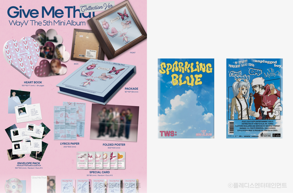 그런가 하면, 그룹 ‘투어스(TWS)’의 데뷔 앨범인 미니 1집 ‘Sparkling Blue’의 위버스 버전은 천계영 만화가와 협업했습니다. 1996년부터 연재되었던 만화 ‘언플러그드 보이’의 주인공 강현겸과 채지율 캐릭터의 일러스트가 약 28년 만에 원화로 제공되어 앨범 커버에 배치된 경우였죠. 플레디스 엔터테인먼트는 청량을 메인 콘셉트로 한 신인 보이그룹을 선보이면서 “강현겸처럼 순수하고, 무해하며, 솔직발랄한 감성을 담고 싶었다”라는 콜라보의 의도를 전했고요.