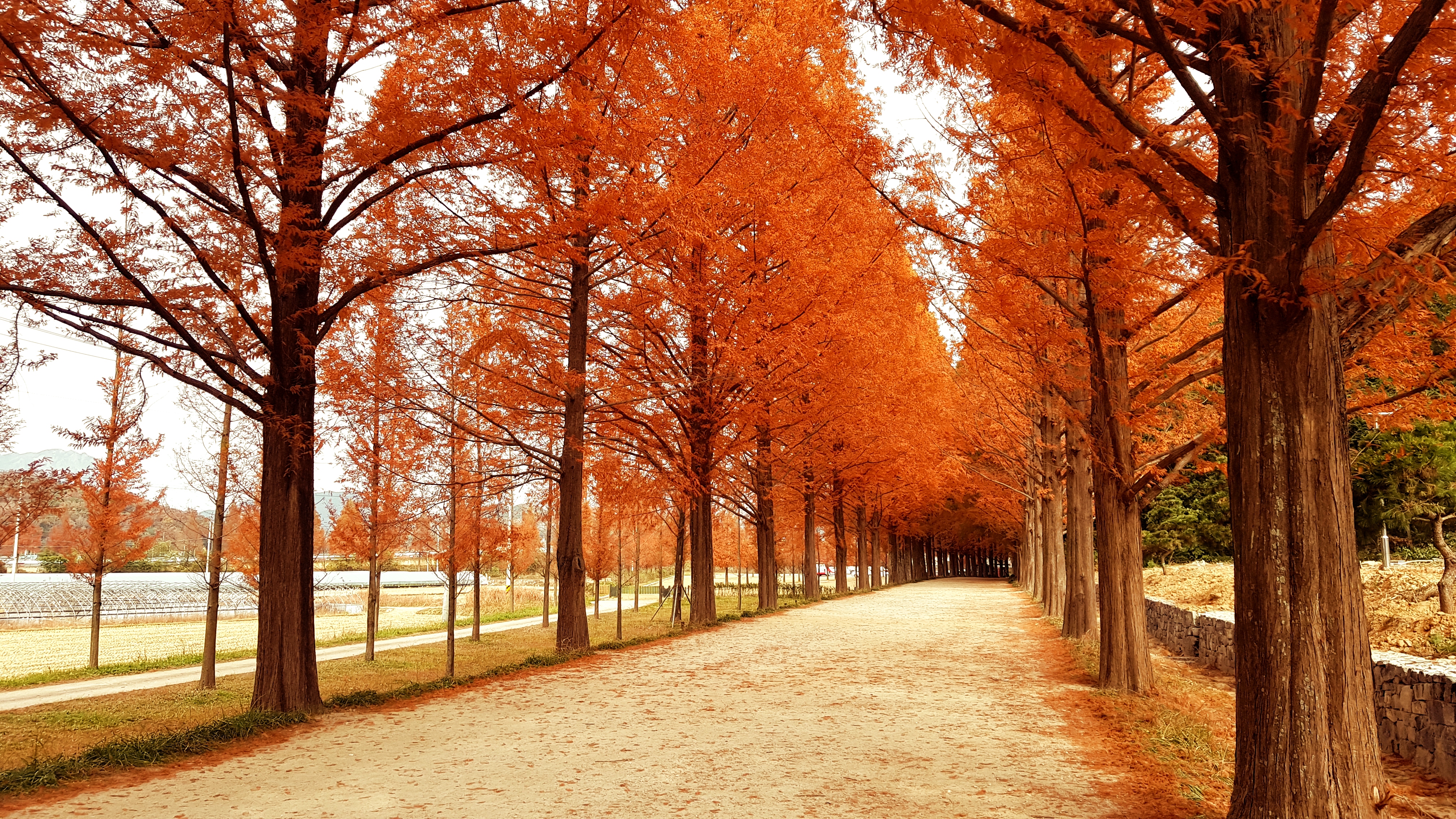 전라남도 담양군 담양읍 학동리에 위치한 메타세쿼이아길은 ‘한국의 아름다운 길 100선’의 최우수상에 선정됐을 만큼 아름다운 거로 유명해요. 약 8.5km 길이로 이어지는 가로수길은 높이 10~20m에 달하는 메타세쿼이아 1300여 그루가 줄지어 서 있는데요. 11월 초가 가장 단풍이 예쁘게 물드는 시기여서, 지금 방문하는 걸 추천해요.