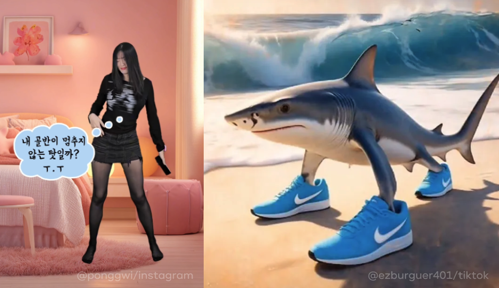두 번째 이유는 생성형 AI의 등장이에요. 텍스트 몇 줄만으로 이미지나 영상을 만들 수 있게 됐거든요. 사람들은 여기에 매료돼 다양한 시도를 했고, 그 과정에서 뭐라고 설명하기 힘든 기묘한 캐릭터 등이 만들어졌어요. 세 발 달린 상어, 야구방망이를 든 통나무 등 캐릭터들이 포켓몬처럼 대결하는 ‘이탈리안 브레인롯(Italian Brainrot)’ 시리즈가 유명하죠.