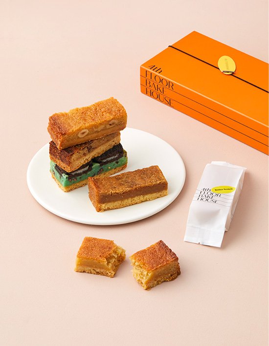 커피나 위스키 등 진한 음료와 어울리는 디저트를 찾고 있다면 사층빵집의 버터바 세트를 살펴봐요. 저는 사층빵집에서 마카롱만 사 먹다가 얼마 전 처음으로 버터바를 먹어봤는데, 찐한 버터의 풍미와 꾸덕한 식감에 깜짝 놀랐어요. 버터스카치·헤이즐넛·뱅쇼 무화과·모카 에스프레소·흑임자 딜라이트·오레오 민트초코 6개 맛으로 구성돼 있으니, 다 같이 나눠먹기에도 좋을 거예요.