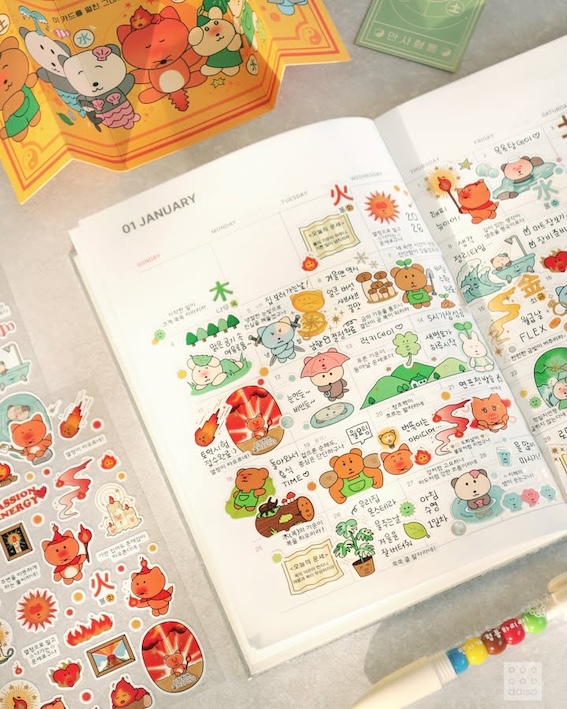 다이소에서 새롭게 출시한 사주스티커가 다꾸러들 사이에서 화제예요. 오행 컨셉의 스티커와 마스킹테이프, DIY 부적카드 등을 출시한 건데요. 자신의 사주에 맞는 동물 캐릭터가 그려진 아이템을 골라 살 수 있다고. 본격 사주마케팅의 등장에 “다이소가 왜 이리 사주에 진심이야” 하는 반응이 나오는 중. 🔗 Z세대는 왜 이렇게 사주에 진심이 된 걸까? 🔮