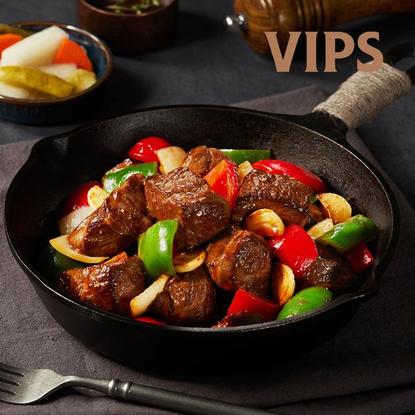 패밀리 레스토랑에서 먹던 스테이크를 집에서도 즐기고 싶다면 빕스의 ‘부채살 찹스테이크’를 시도해봐요. 밀키트 전문회사 마이셰프가 빕스와 콜라보해 만든 제품으로, 만들기 쉬운데 맛있다는 평이 많아요. 고기뿐 아니라 양파, 파프리카 등 채소도 함께 들어 있어서, 재료를 팬에 볶기만 하면 요리 한 그릇이 완성돼요.