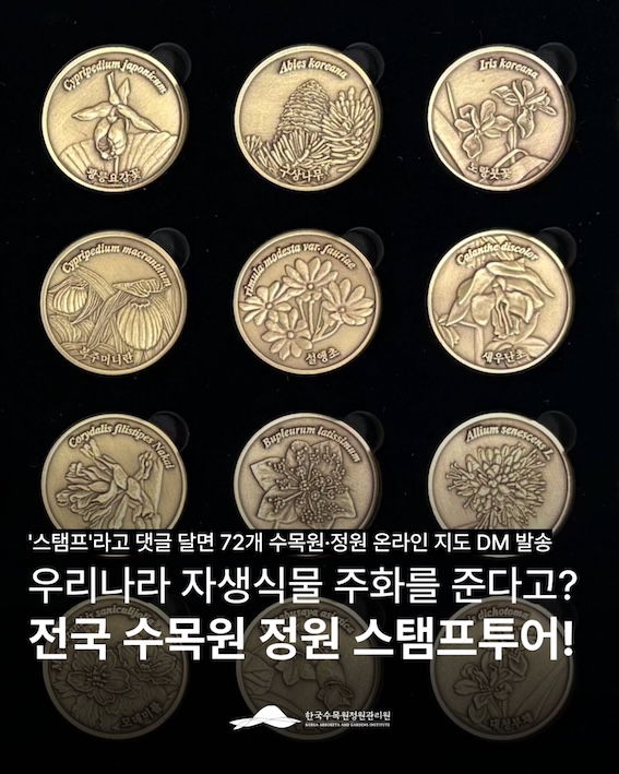 국립세종수목원이 운영하는 ‘2026 수목원 스탬프 투어’가 SNS에서 관심을 받고 있어요. 전국 72개 수목원·정원 중 6곳을 방문하면 첫 기념주화를 받을 수 있고, 이후 3곳을 더 방문할 때마다 주화를 하나씩 더 주는데요. 수목원별로 주화 디자인이 달라서 도장 깨기를 하듯 모으는 재미가 쏠쏠하다고.