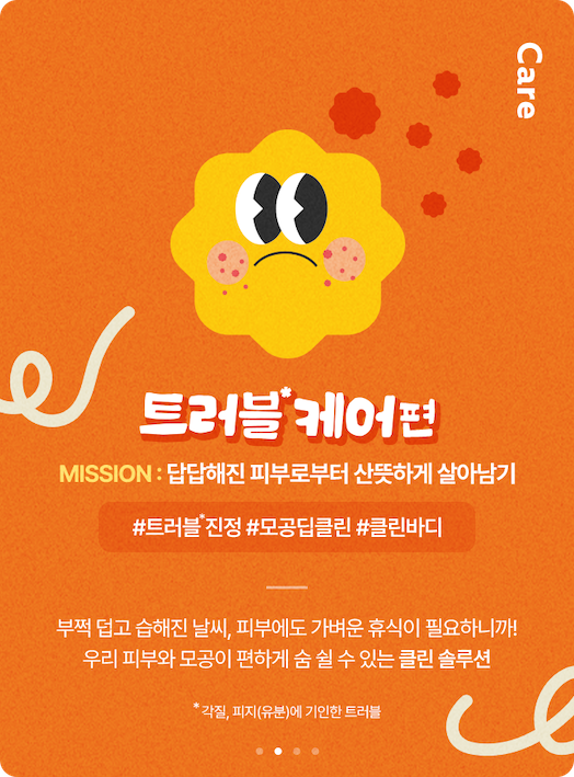 Step 2️⃣ 트러블* 케어, 답답해진 피부로부터 산뜻하게 살아남기 🌋