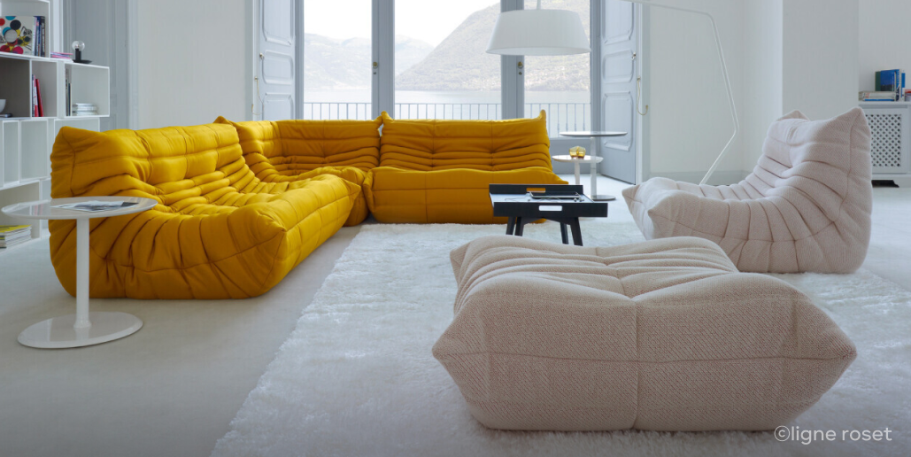 그러던 1973년, 리네 로제의 운명을 바꾸는 중요한 사건이 일어나요. 바로 지금까지도 유명한 리네 로제의 대표 가구, ‘토고(Togo)’ 소파를 선보인 건데요. 낮고 유연한 실루엣과 부드러운 착석감, 한눈에 알아볼 수 있는 독창적인 디자인으로 토고 소파는 리네 로제뿐 아니라 프랑스 전체를 대표하는 아이콘으로 자리잡았어요. 50년이 넘는 시간이 지난 지금도 여전히 굳건한 스테디셀러로 언급될 만큼 말이죠.