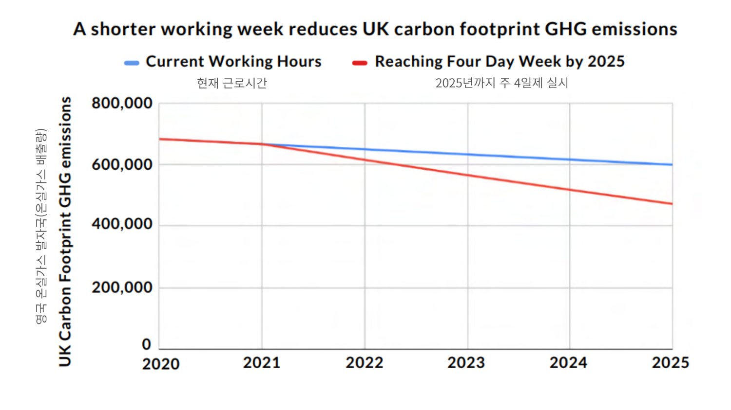 영국 환경단체 ‘플랫폼 런던’의 연구에 따르면, 영국이 주 4일제를 도입하면 영국 전체 배출량의 20%에 달하는 온실가스를 줄일 수 있다고 합니다
