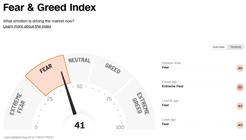 (8월 5일 기준 17, 8월 12일 기준 22로 Extreme Fear 단계에 해당했음)