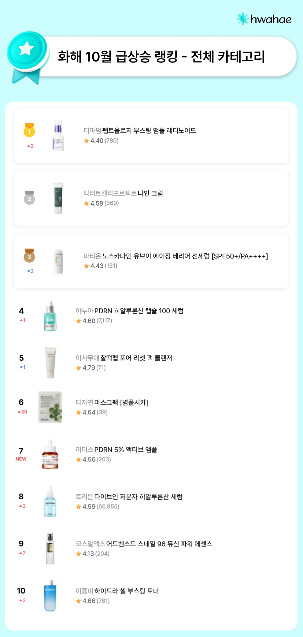10월 급상승 랭킹 - 에센스/앰플/세럼 (보습)