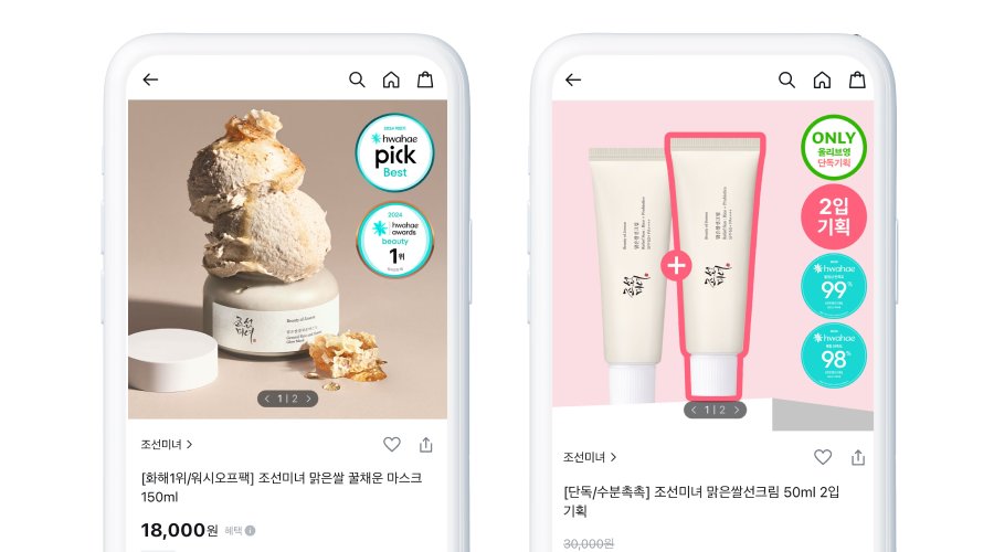 조선미녀는 독점 기획세트를 통해 플랫폼 유저들만을 위한 특별 구성을 선보였습니다. 해외에서는 이미 잘 알려진 브랜드지만 국내에서는 비교적 생소했던 상황에서, 뷰티에 대한 관심과 이해도가 높은 사용자들을 우선 타겟으로 삼았습니다.