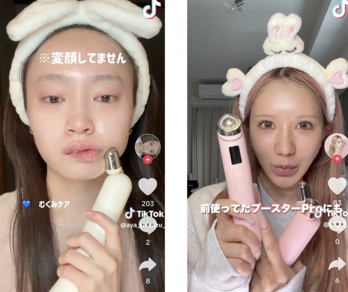 [EMS 홈케어 관련 Tiktok]출처: Tiktok @sh_11_zu 출처: Tiktok @aya_shimizu_2. 레티놀・부스터, 고기능 제품의 확장