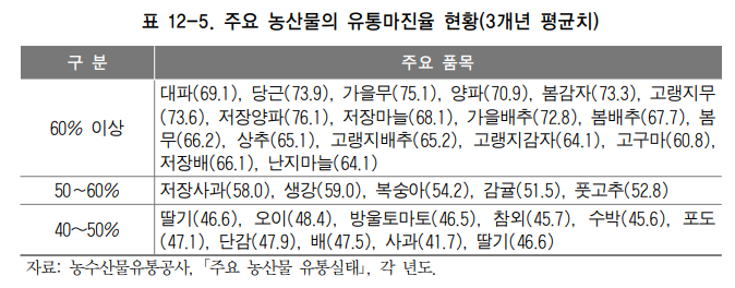 ํ๊ตญ์ ํตํ์ ์ฐ๊ตฌ์์ด 2011๋ ์ ๋ฐํํ ใ๋์ฐ๋ฌผ ์ ํต๊ฒฝ๋ก๋ณ ์ ํต๋ง์ง ์กฐ์ฌ ์ฐ๊ตฌใ์ ๋ฐ๋ฅด๋ฉด, ์ฃผ์ ๋์ฐ๋ฌผ์ ์ ํต ๋ง์ง์ ํ๊ท ์ ์ผ๋ก 40%๋ฅผ ๋๋๋ค๊ณ ๐ฑ ํด์. ์ด๋ ์๋งค ๋ง์ง์ด ๋งค์ฐ ๋๊ธฐ ๋๋ฌธ์ธ๋ฐ ์๋งค ๋ง์ง์ ๋ณดํต ๋๋งค ๋ง์ง์ 4~6๋ฐฐ์ ๋ฌํด์.
