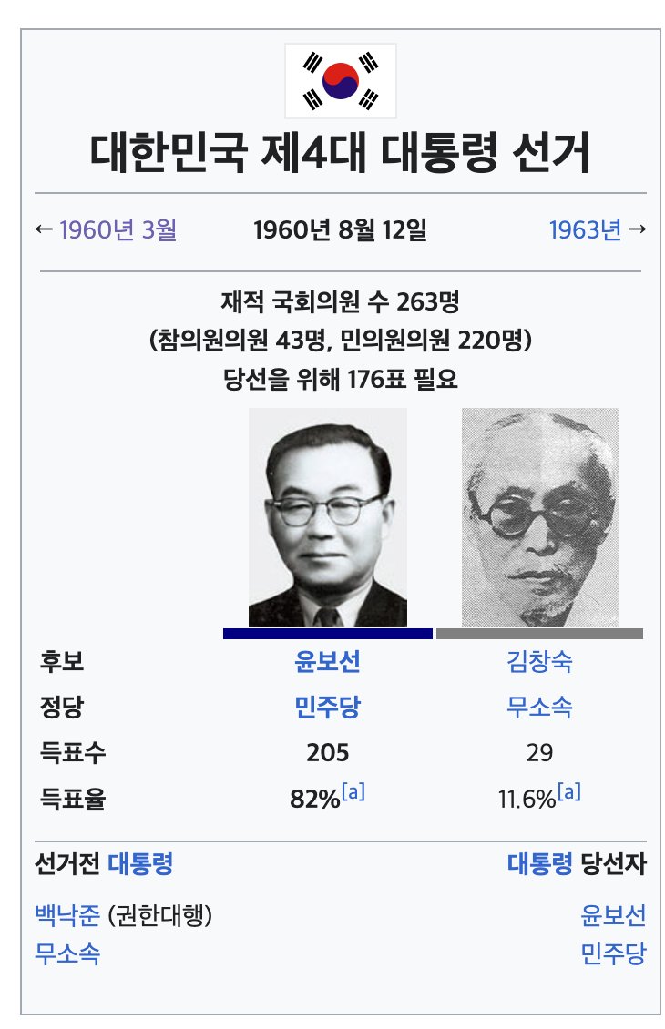 이어지는 (진짜) 제4대 대통령 선거에서 윤보선이 당선됨으로써 대한민국은 새로운 시대를 열게 되었어요.
