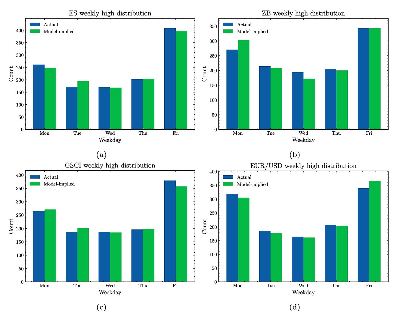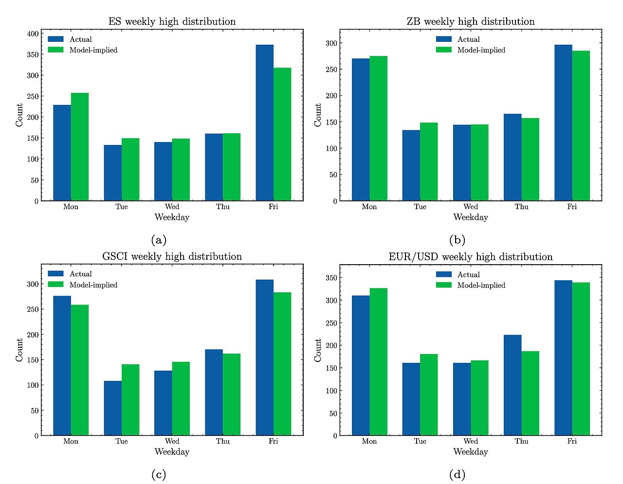 자, 그러면 기존의 모형들이 과연 "특정 요일에 주간 최고가와 최저가와 몰리는 현상"을 얼마나 잘 설명했을지 결과를 봅시다!
