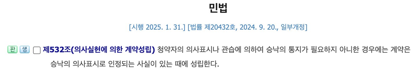 "๋๋ ๊ทธ๋ฅ ์๋น์ ๋ค์ด๊ฐ์ ์์์ ๋จน์์ ๋ฟ, ์ด๋ฐ ๊ณ์ฝ์ ๋ํด์๋ ๋์ํ ์ ์๋๋ฐ?"๋ผ๊ณ ๋ง์ ํ ์๋ ์๊ฒ ์ง๋ง,, ๋ฒ์ ์ผ๋ก ํตํ์ง๋ ์์์. ์๋๋ฉด ๋ฏผ๋ฒ ์ 532์กฐ(์์ฌ์คํ์ ์ํ ๊ณ์ฝ์ฑ๋ฆฝ) ๋๋ฌธ์ด์์. ์ฐ๋ฆฌ๊ฐ ๋ณดํต ์๋น์ ๋ค์ด๊ฐ์ ๋ฐฅ์ ๋จน๋๋ฐ ๊ณ์ฝ์์ ์ธ์ธ์ ํ๊ฑฐ๋ "์ด๋ชจ๋! ์ ๋ ์ด๋ชจ๋๊ณผ ์์๋ฌผ ๊ณต๊ธ ๊ณ์ฝ์ ์ฒด๊ฒฐํ๊ณ , ์์๋ฌผ์ ๋จ๊ฒผ์ ๋ 5,000์์ ๋ฒ๊ธ์ ๋ด๋ ๊ณ์ฝ๋ ์ฒด๊ฒฐํ๊ณ ์์ฌ๋ฅผ ์์ํ๊ฒ ์ต๋๋ค~~"๋ผ๊ณ ๋งํ์ง ์๊ธฐ ๋๋ฌธ์ด์ฃ . (๋ฒ์ ์๊ฐ๋ณด๋ค ๋ฌด์ํ์ง ์์์. ๊ด์ต, ๋ฌต์ ๋ฑ์ ๋ํด์ ๋๊ตฌ๋ณด๋ค ์ ๋ค๋ฃจ๊ณ ์์ฃ .)