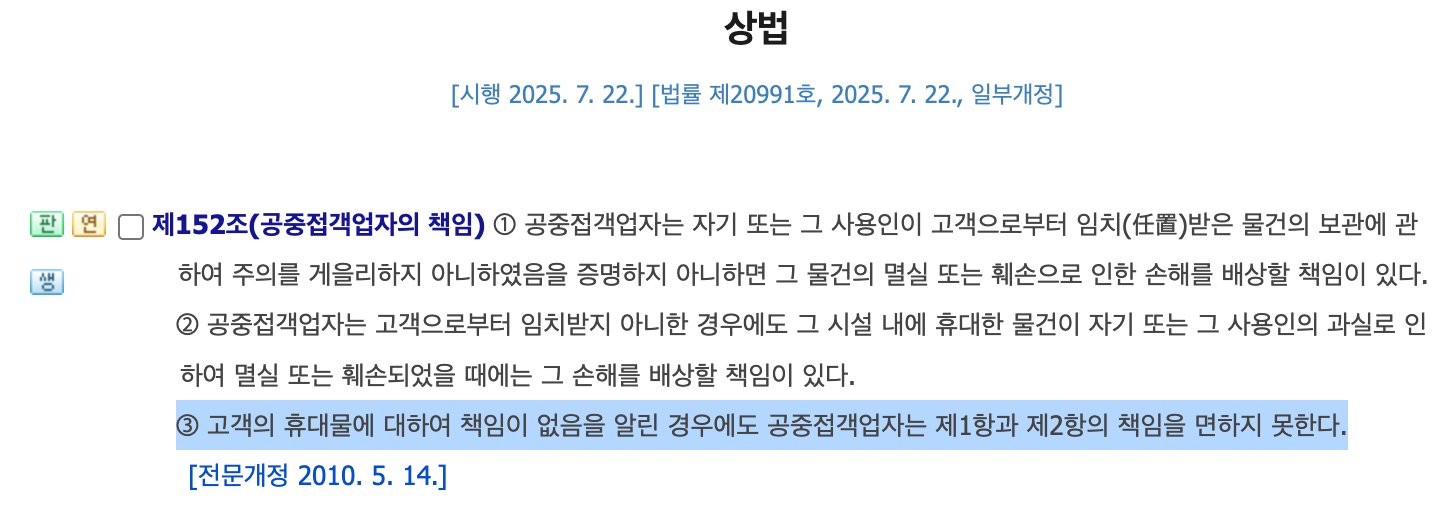 ๋ค๋ง ๊ณ ๊ฐ์ ๋ชจ๋ ๋ฌผํ ๋ถ์ค์ ๊ดํด ์ฑ ์์ ์ ธ์ผ ํ๋ ๊ฒ์ ์๋์์. ๋ฐ๋ก "๐๏ธ ๋น์ผ ๋ฌผ๊ฑด"์ด๋ผ๋ฉด ๋ง์ด์ฃ . ์ด ์ญ์ ๋ฐ๋ก ๋ค์ ์ 153์กฐ์ ๋์์. (์ธํธ๋ก ์ฃผ๋ฃจ๋ฃฉ ์๋ค์.) ํนํ ์ฌ์ฐ๋์ ๊ฐ๋ฉด ์๋ด ๋ฌธ๊ตฌ๋ก ๋ง์ด ๋ดค์ ๊ฑฐ์์.