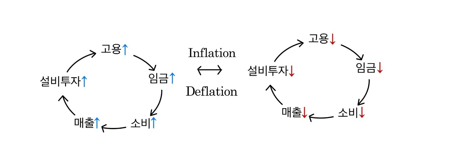하지만 소비가 지나치게 줄면 물가 상승 압력이 완화되고, 다시 소비가 늘어나면서 경기가 회복되는 흐름이 나타납니다.